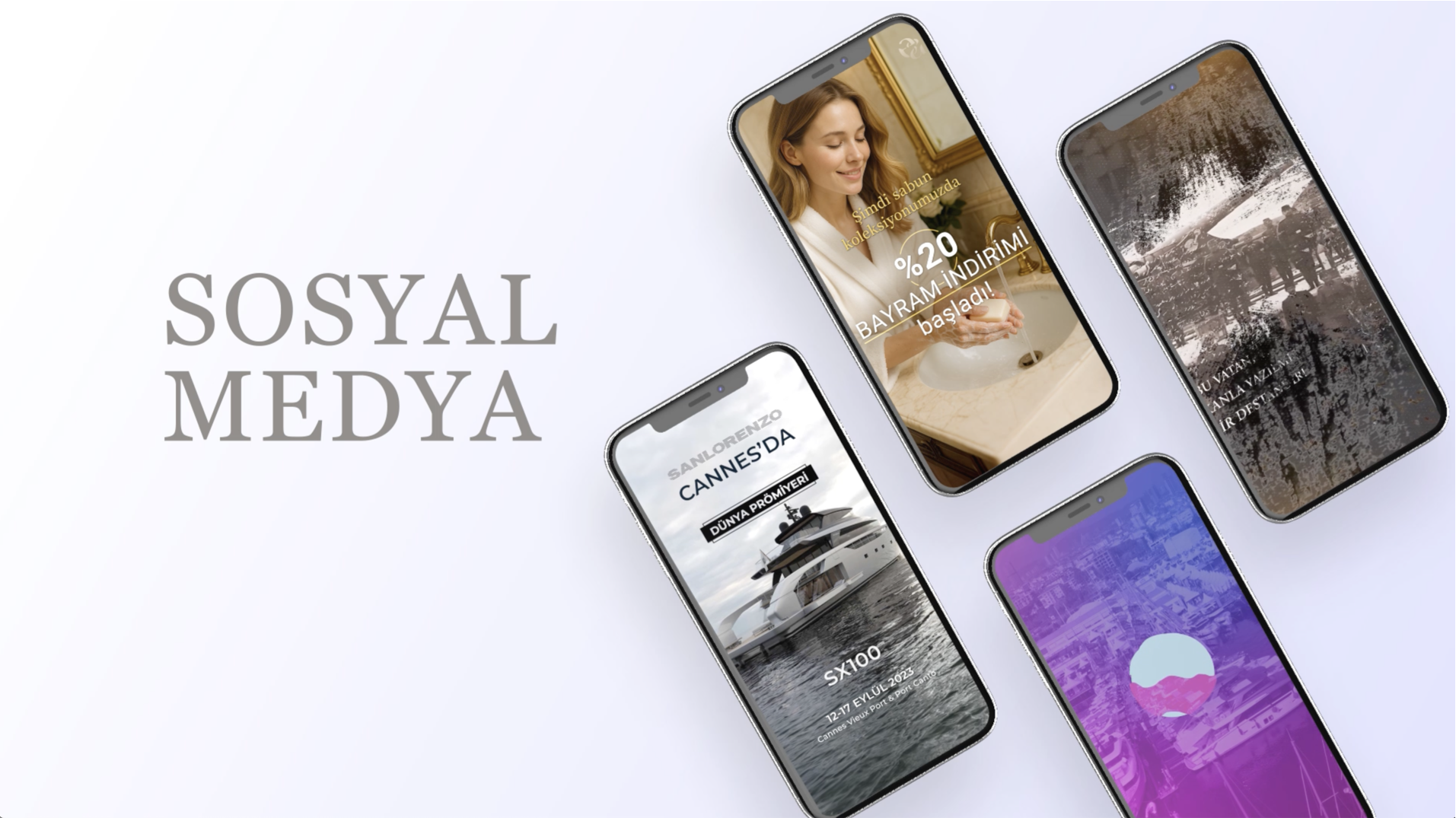 Instagram, Facebook, TikTok, Pinterest ve YouTube gibi platformlara özel formatlar için içerikler üretiyor; her kanalın dinamiğine uygun görsel ve mesajlarla markanızı dijitalde büyütüyoruz.